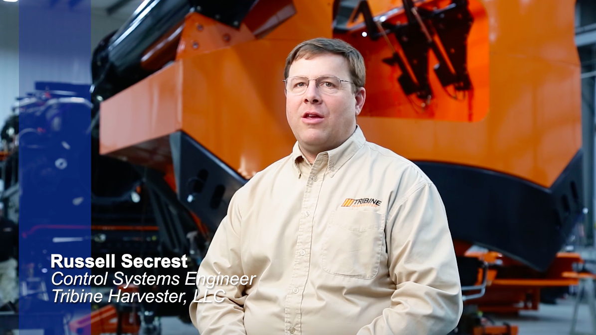 “A couple of challenges that we faced during the design were the control of the concaves around the rotor and the opening and closing of the grain bin extension,” said Russell Secrest, Control Systems Engineer at Tribine Harvester. “The needs for the grain bin extensions became broad because we have two large doors that we had to open and close. We also have another element in the middle which is the auger that brings the grain up into the bin.”