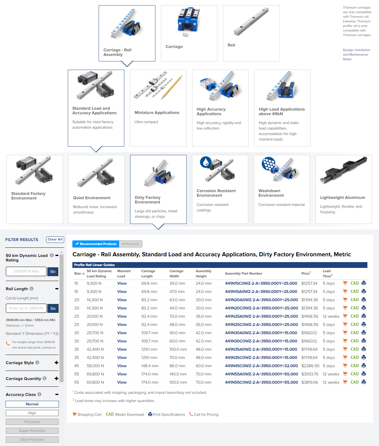 The new Thomson online tool for profile rail linear guides streamlines the search, selection and overall purchasing experience.
