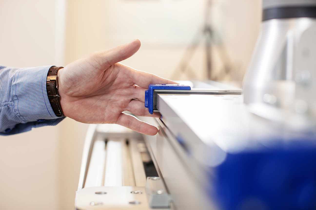 CTU designers can afford such a capability by deploying collision detection paddles on both sides of the carriage, where an operator might instinctively put a hand (Figure 2). Forces as low as 13 N—about the force used in a computer keystroke—would be enough to signal the system to stop at once. A combination of current limit and position error monitoring would enable the detection, complementing similar sensing that may already be embedded into the joints of the robot arm. In all cases, users can adjust the sensitivity of both the 7th axis and the cobot arm. They should do this based on a risk assessment that considers the motion profile, moving materials and other application aspects.