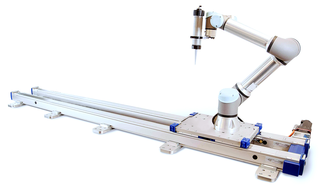 Most robot arms have six axes of motion, fewer than a human arm, but still plenty of range to automate complex industrial operations with speed, precision and consistency unattainable by humans. Although the cost of implementation has dropped dramatically over the years—from hundreds to tens of thousands of dollars—a robot is still a capital investment requiring a solid business case. Adding a 7th axis to a traditional 6-axis robot helps make that case by simplifying the transport of a single robot to multiple locations, functioning as robot transfer units (RTUs).